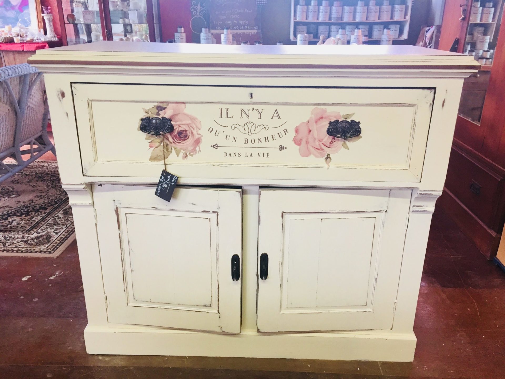 We stock Annie Sloan Chalk Paint because it’s non-toxic. No sanding or priming needed because it paints over just about anything. There’s NO paint fumes. And it washes out in water. What could be better than that?