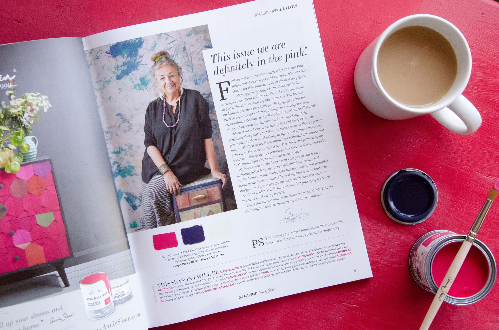 The Colourist is a unique Bookazine (editorial like a magazine, no adverts like a book) dedicated to sharing Annie Sloan’s passion for colour. It is a collectable, bi-annual publication featuring 132 carefully curated pages bound in a covetable cover.